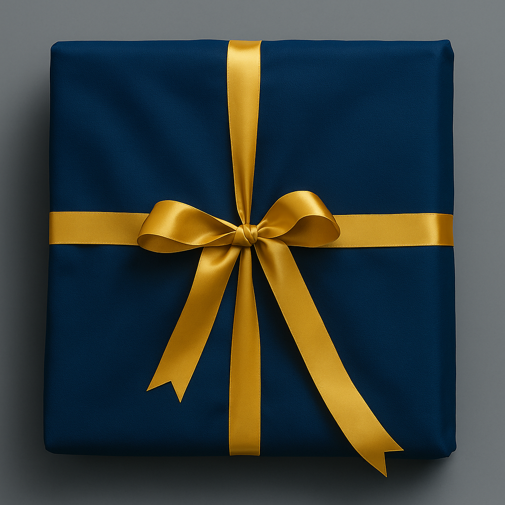 Add your premium gift wrap: elegant midnight blue, satin gold ribbon, luxury finish. Perfect for making a lasting impression from the moment it's opened.